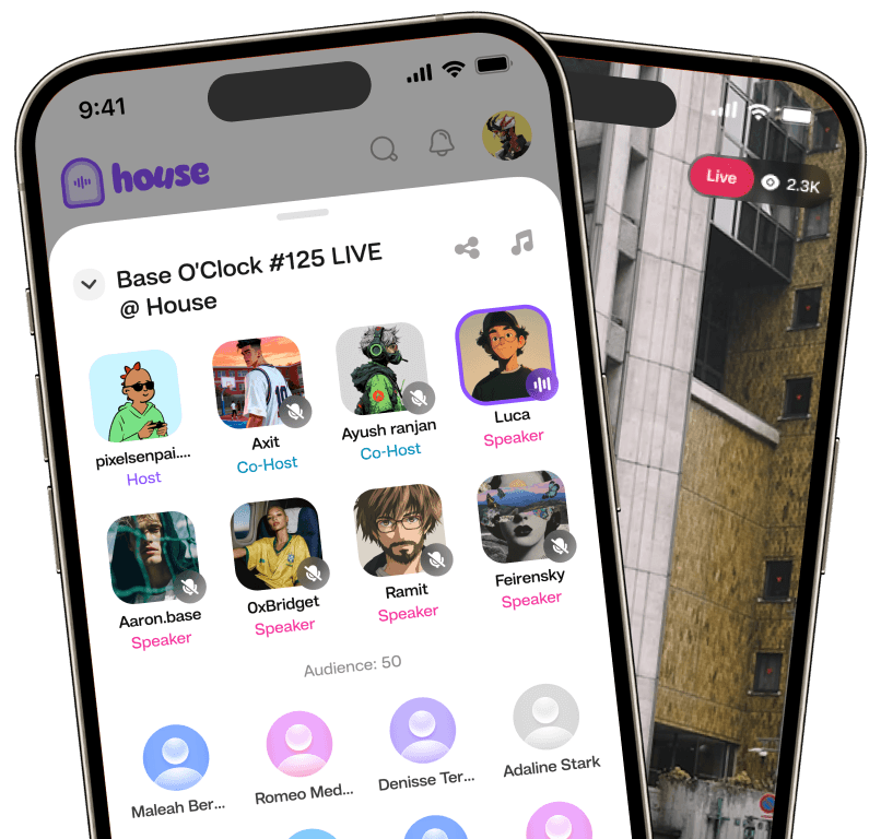 Spaces, livestreams, and community. Powered by $HOUSE.